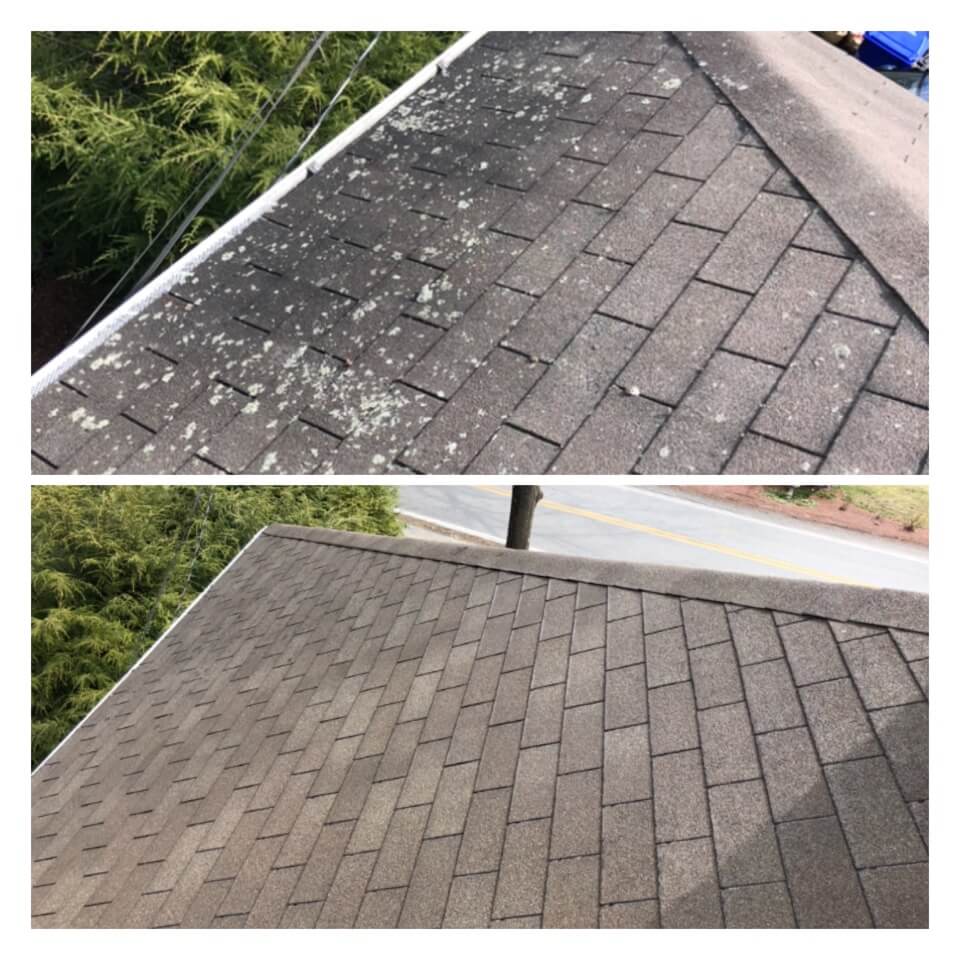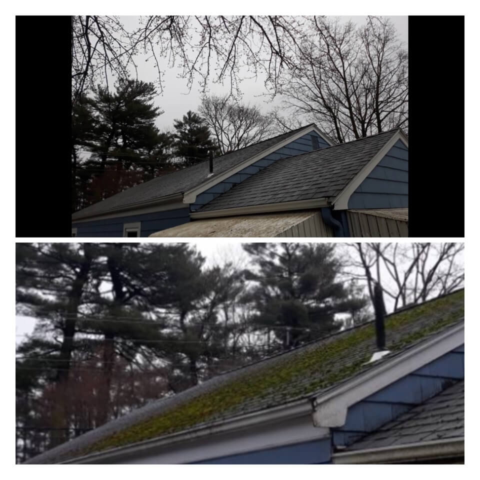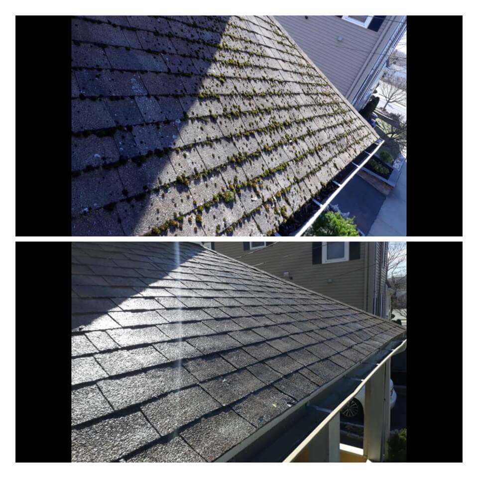 HiCleaners is the most experienced company in Lynnfield, MA that deals with roof washing and roof soft washing. All of our employees are trained to recognize precise solution mixing ratios to provide you with the safest and most effective soft washing service. Roofs are a commonly neglected part of a house due to the fact that most people don’t have ladders to access it, so it is very easy to just leave it alone and forget about problems that may start to arise. Just like many home owners, discoloration and small bits of moss on a roof can be overlooked because of the misconception that it is just aesthetic. However, it isn’t just aesthetic, the moss slowly lifts the granules off the shingles which in turn shorten the life of the shingle. The moss also spreads, just like any bacteria if it is left alone for too long, it can quickly become a problem that spirals out of control. Call HiCleaners for a free quote, we only use the most advanced eco-friendly solutions and equipment to make sure the job is done right, for the safety of the employees, your plants, grass, pets, and children.