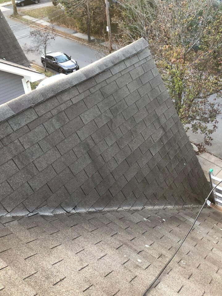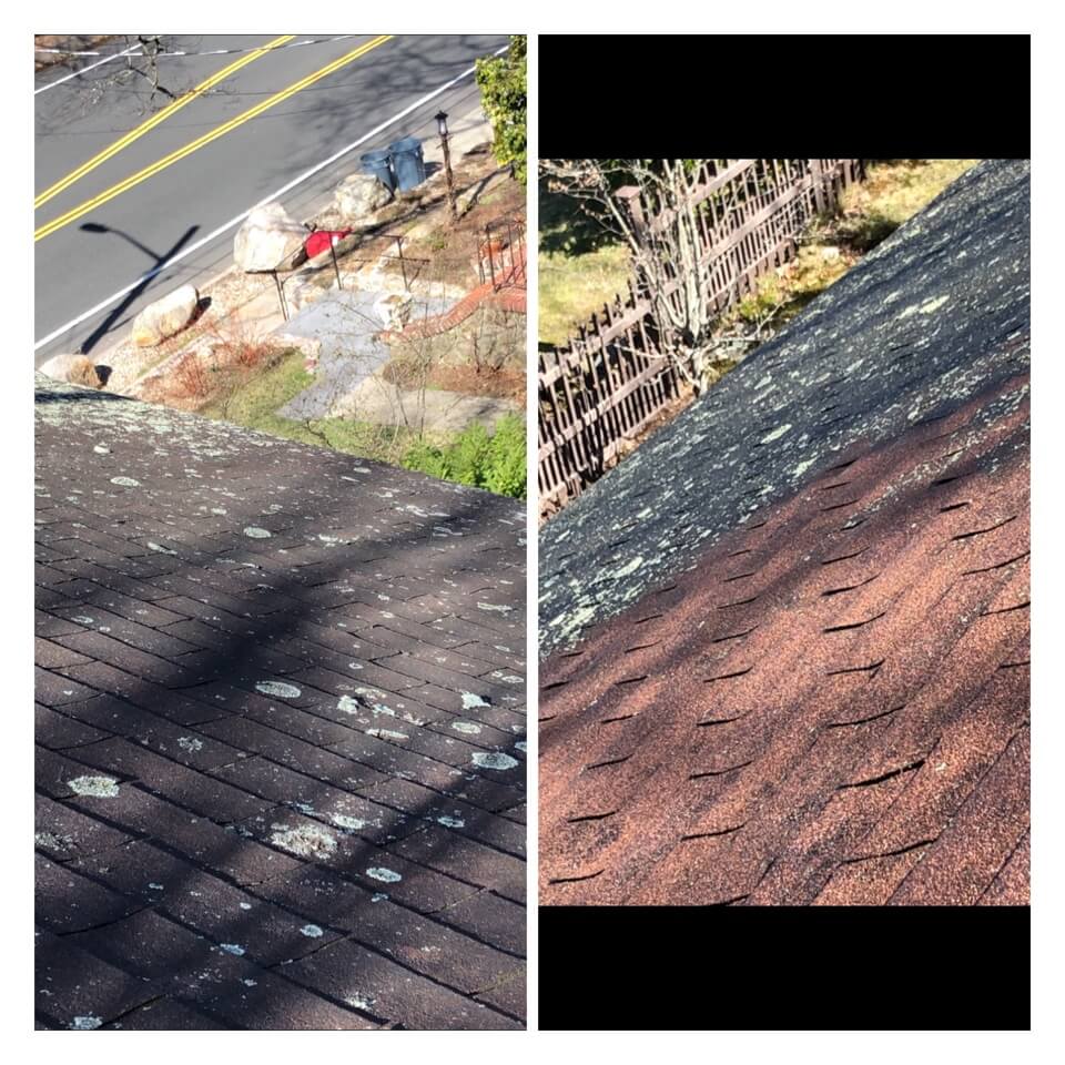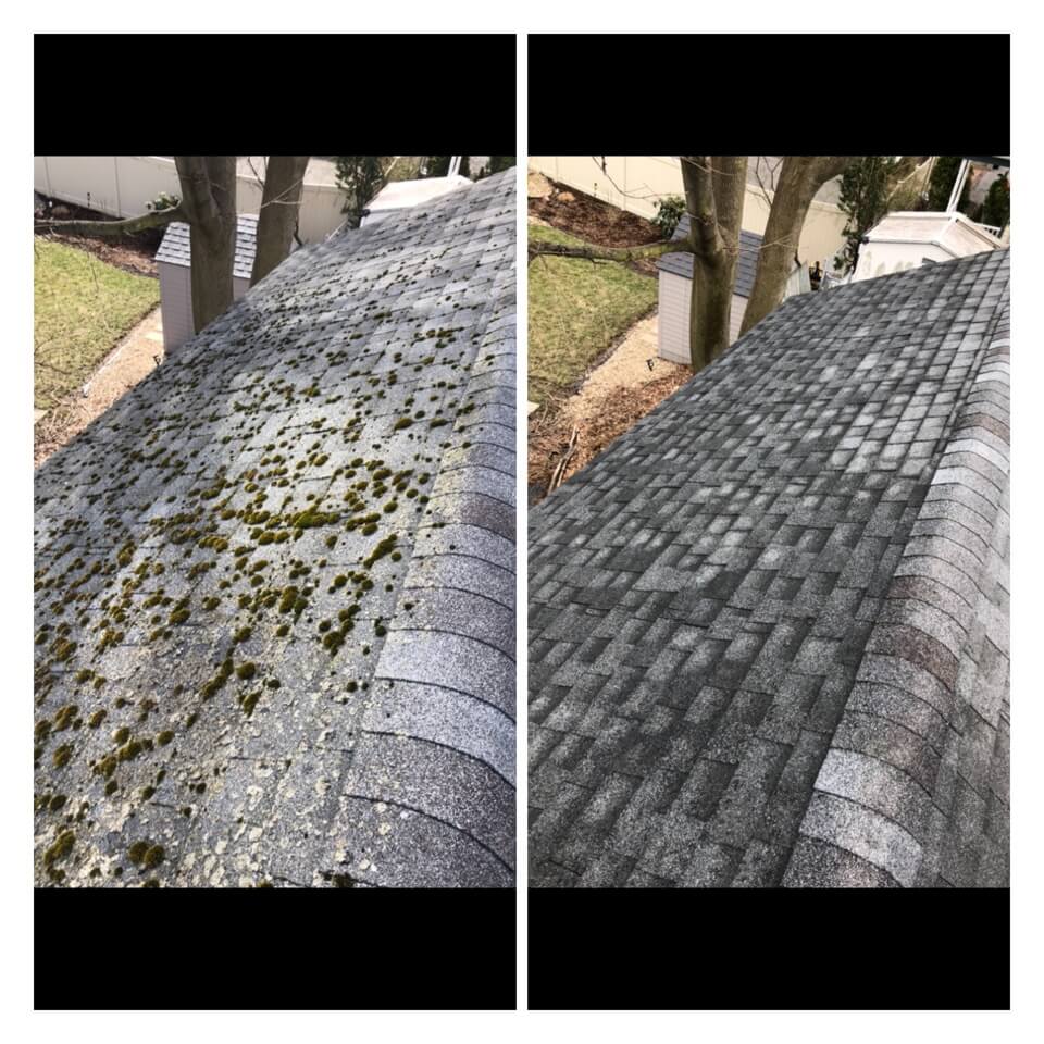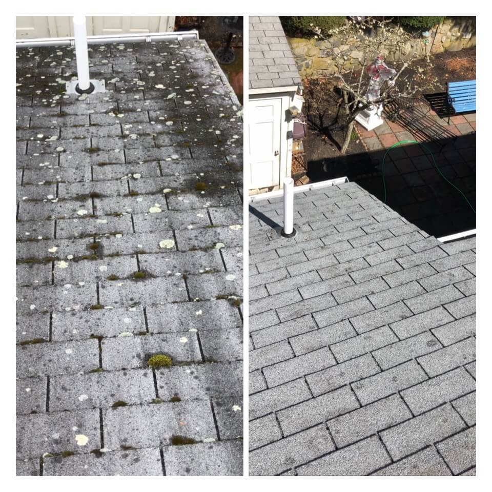 HiCleaners is the most experienced company in Lynnfield, MA that deals with roof washing and roof soft washing. All of our employees are trained to recognize precise solution mixing ratios to provide you with the safest and most effective soft washing service. Roofs are a commonly neglected part of a house due to the fact that most people don’t have ladders to access it, so it is very easy to just leave it alone and forget about problems that may start to arise. Just like many home owners, discoloration and small bits of moss on a roof can be overlooked because of the misconception that it is just aesthetic. However, it isn’t just aesthetic, the moss slowly lifts the granules off the shingles which in turn shorten the life of the shingle. The moss also spreads, just like any bacteria if it is left alone for too long, it can quickly become a problem that spirals out of control. Call HiCleaners for a free quote, we only use the most advanced eco-friendly solutions and equipment to make sure the job is done right, for the safety of the employees, your plants, grass, pets, and children.